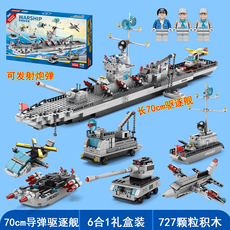 儿童小颗粒军事航母战舰模型系列拼装6到8积木12岁男孩礼物大套装