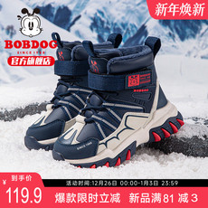 巴布豆男童棉鞋冬季新款皮面加绒加厚保暖中大童儿童户外雪地靴子
