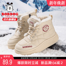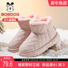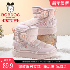 巴布豆童鞋女童加绒雪地靴2025新款冬季加厚雪地棉小女孩儿童短靴