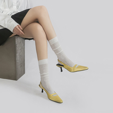 杨树林同款字母跟高跟鞋2025新款包头后空凉鞋性感小众漆皮单鞋