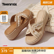 ZA2026夏季新款松糕厚底拖鞋沙滩度假风凉拖鞋增高显瘦外穿凉鞋女