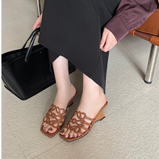 2026年新款坡跟镂空女高跟凉鞋女气质方头露趾外穿懒人时尚拖鞋