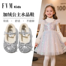 女童鞋子儿童公主水晶鞋2025新款秋冬季加绒艾莎女孩洋气软底银色