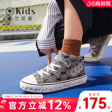 泰兰尼斯kids男童板鞋秋冬高帮帆布鞋女滑板鞋学生时尚中大童鞋子