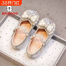 巴布豆真皮儿童公主鞋女童皮鞋2026新款春秋小女孩水晶鞋闪亮单鞋