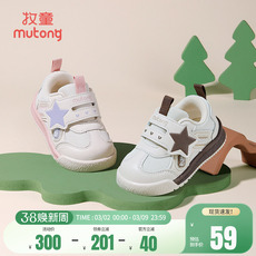 牧童儿童运动鞋女童春秋轻便减震童鞋皮面男童皮面软底时尚休闲鞋
