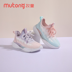 牧童童鞋秋季款女童超轻全飞织透气简约渐变色慢跑鞋休闲运动鞋