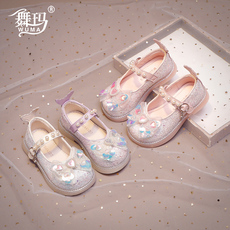 舞玛女童鞋子儿童公主鞋2026春季新款水晶蝴蝶结演出单鞋软底皮鞋