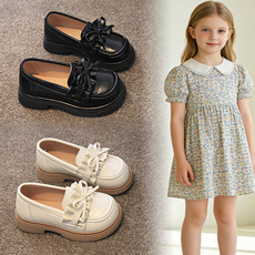 女童小皮鞋2026春季新款儿童鞋子黑白色方头乐福鞋春秋单鞋公主鞋