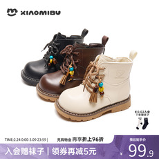 小米步女童皮靴2025冬季新款英伦风户外工装靴儿童复古百搭马丁靴