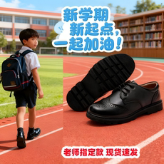 女童鞋子2024春秋款男童鞋黑色儿童单鞋演出校园学生表演小皮鞋