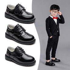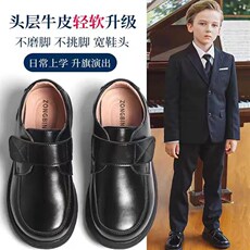 真皮儿童鞋男童皮鞋2023新款韩版英伦风黑色软底小学生校园演出鞋
