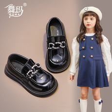 百丽童鞋女童校园演出鞋春季新款小女孩公主鞋儿童时尚单鞋黑皮鞋