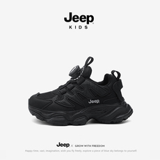 jeep男童老爹鞋春秋透气轻便黑色纽扣鞋子女童2025儿童跑步运动鞋