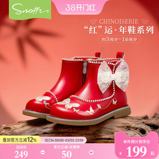 红蜻蜓真皮女童鞋儿童马丁短靴子2026新款秋冬季袜靴宝宝皮靴公主