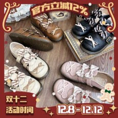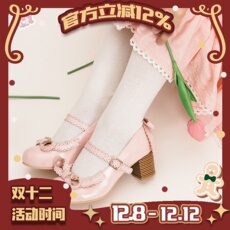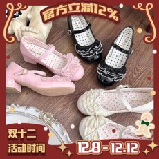 【现货】缎缎糕 绵羊泡芙定制Lolita鞋蕾丝蝴蝶结中跟皮鞋玛丽珍