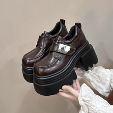 2025秋季新款10cm内增高女鞋厚底松糕小个子小皮鞋百搭乐福鞋单鞋