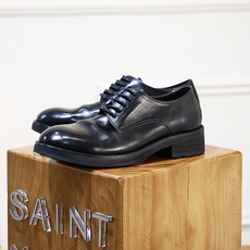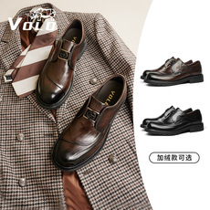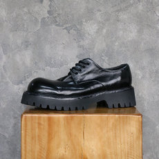 优100复古水洗英伦圆头商务休闲皮鞋男士真皮大头增高厚底德比鞋