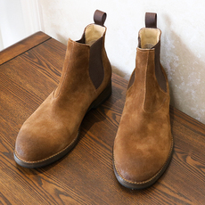 优100马皮切尔西烟筒靴复古水洗高帮男士皮靴休闲皮鞋尖头厚底潮