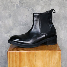 优100马皮大头切尔西靴复古褶皱水洗高帮男士真皮靴休闲皮鞋短靴