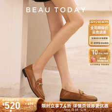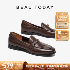 BeauToday乐福鞋女2025新款一脚蹬黑色英伦风小皮鞋平底浅口单鞋