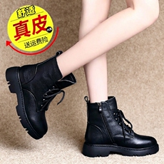 紅蜻蜓女鞋品牌断码真皮马丁靴女2025秋冬新款时尚女单靴皮鞋粗跟