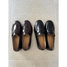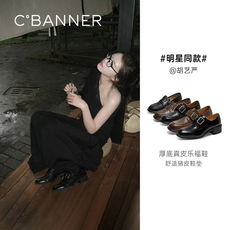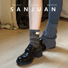 羊皮版sanjuan三卷小皮鞋厚底粗跟乐福鞋棕色单鞋复古学院风女鞋