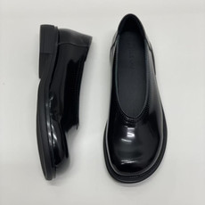 ESKEIN欧美大码女鞋41到43亮面气质复古宽头小皮鞋宽胖脚牛皮单鞋