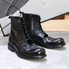 优100马皮大头拉链马丁靴复古褶皱水洗高帮男士皮靴休闲皮鞋短靴