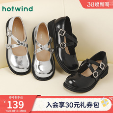 热风玛丽珍女鞋2025年秋季新款平底黑色小皮鞋百搭休闲银色鞋子