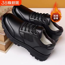 2025年保暖棉鞋黑色厚底工作运动鞋软底运动休闲皮鞋作训防滑中年