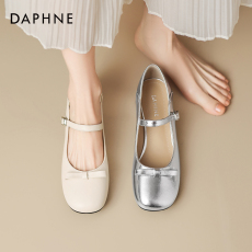 达芙妮银色单鞋女2026春季新款法式低跟圆头百搭小皮鞋玛丽珍女鞋