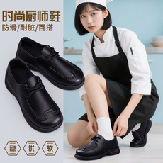 肯德基久站不累工作鞋女厨房防滑防油防水黑色皮鞋舒适上班妈妈鞋