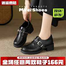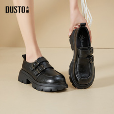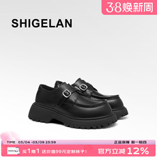 诗歌兰2026新款真皮厚底乐福鞋女英伦风皮带扣小皮鞋中跟增高单鞋