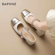 达芙妮高跟玛丽珍鞋女2026新款春夏粗跟小皮鞋方头拼色法式单鞋子