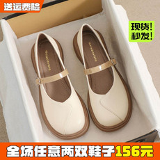 星期六米白色玛丽珍鞋女2026年春季新款低跟小皮鞋方头一脚蹬单鞋