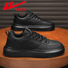 回力男鞋黑色皮鞋春季软底皮面运动厨防防滑工作防水大码休闲板鞋