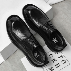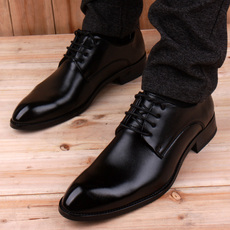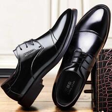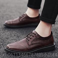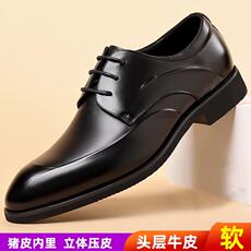 新款新款男士皮鞋正装商务皮鞋头圆男系带婚鞋英伦透气增高工鞋作