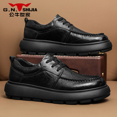 牛皮】真皮休闲皮鞋男百搭透气潮流广州真皮男鞋增高休闲商务春季