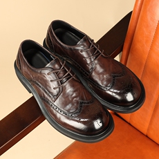 2026春新品布洛克雕花皮鞋男式头层牛皮手工系带英伦商务风德比鞋