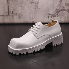 男鞋子夏季新款厚底时尚休闲鞋方头白色皮鞋韩版潮流系带青年鞋子