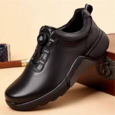 高档冬季皮鞋男士皮真装商休闲鞋加绒正中老年务爸爸鞋子