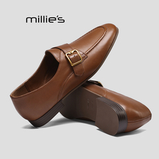 MILLIE'S/妙丽通勤简约百搭小皮鞋女春季真皮圆头平底深口单鞋Q
