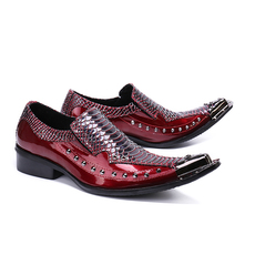 尖头潮流个性商务休闲男鞋红色外贸时尚牛皮皮鞋夏季单鞋透气潮鞋