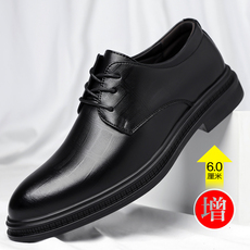 皮鞋男款秋季英伦风商务正装德比鞋黑色系带休闲鞋内增高结婚男鞋
