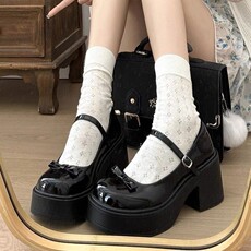 羊皮版!法式内增高玛丽珍单鞋女复古山茶花方头一字扣粗跟小皮鞋