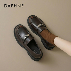 达芙妮棕色乐福鞋女款厚底一脚蹬高跟单鞋巨好看山茶花英伦小皮鞋