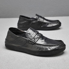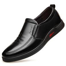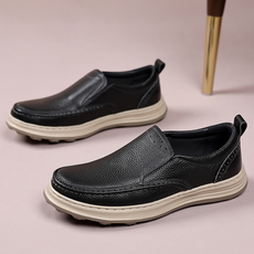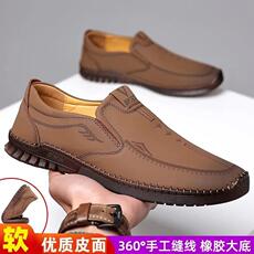 商场撤柜同款软牛皮男士皮鞋一脚蹬休闲鞋商务厚底软底防滑爸爸鞋