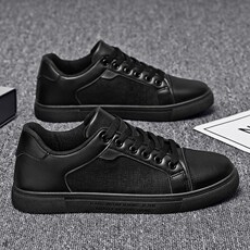 男鞋纯黑色板鞋韩版潮流休闲皮鞋百搭全黑色英伦鞋黑底工作上班鞋