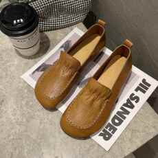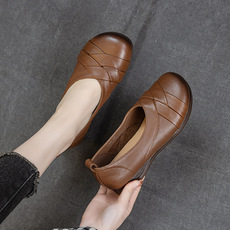 春季新款头层牛皮平底单鞋女手工复古浅口妈妈鞋真皮防滑老年皮鞋